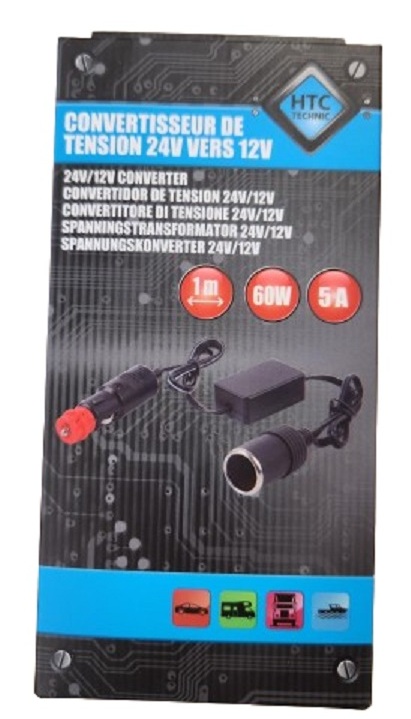 Permet de brancher et d'utiliser les appareils 12V (équipés avec prise allume cigare) aux prises allume cigare des véhicules 24V