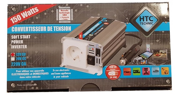 Convertisseur de tension 12V / 220V 150W avec prise USB-A 2A