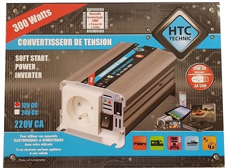 Convertisseur de tension 12V / 220V 300W avec prise USB-A 2A