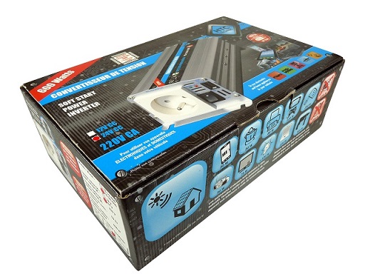 Protections :Surchauffe, Surcharge et inversion de polarite , coupure automatique en cas de court circuit tension batterie trop élevée ou baisse importante de tension de batterie; alarme batterie basse