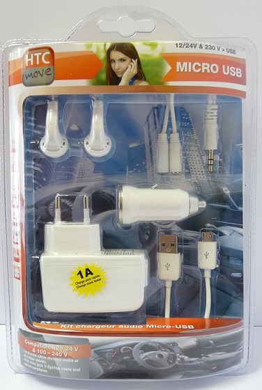 Kit chargeur allume cigare et prise secteur MICRO USB avec doubleur et écouteurs