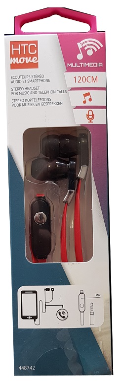Ecouteurs pour smartphone ou tablette avec micro + câble 1.2m rouge