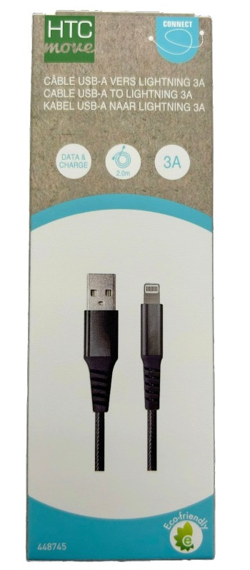 Câble de charge et données tressé USB-A vers Lightning 3A