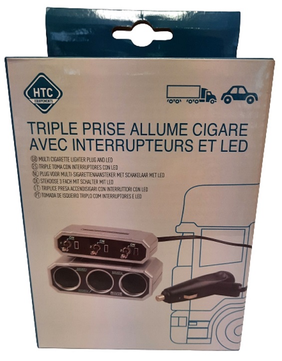 Triple prise allume cigare 5A avec cordon et 3 interrupteurs séparés
