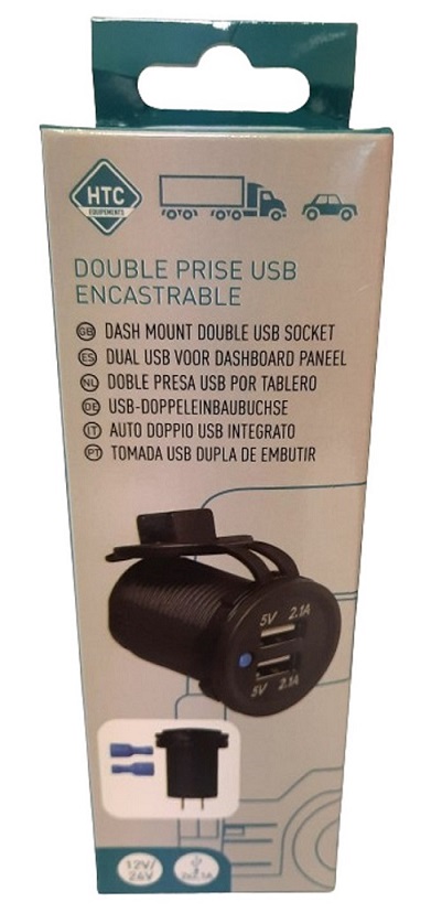 Double prise USB-A 2 X 2,1A 12V / 24V encastable sur tableau de Bord