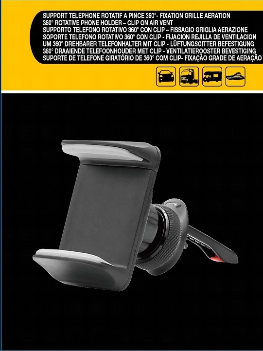 Porte téléphone rotatif 360° à pince fixation grillle d'aération