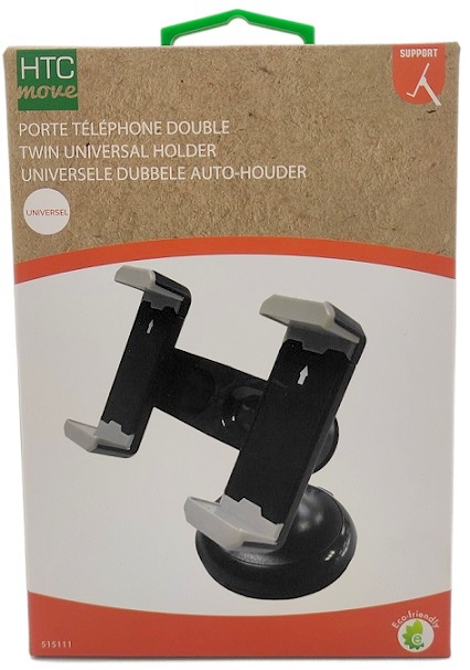 Ce porte téléphone double est équipé d'une ventouse en silicone idéale pour la fixation sur des supports multiples (pare brise, tableau de bord, bureau...). Il convient pour deux téléphones de largeur comprise entre 55 et 85mm max. Orientable 360°pour un positionnement en mode portrait ou paysage