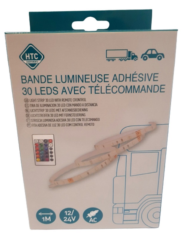 Bande 30 leds multicouleur 100cm 12V / 24V avec télécommande