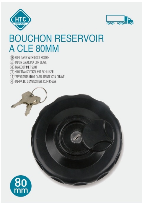 Bouchon de réservoir pour Poids Lourd en métal noir diamètre 80 mm livré avec deux clefs
