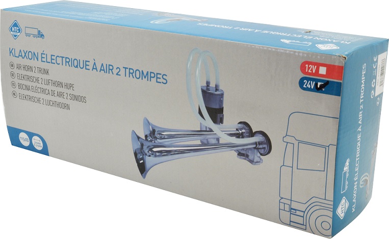 Puissance sonore 115 décibels. Longueur des trompes 37cm et 31cm. Intensité max requise: 26A. Fréquence: 440hZ