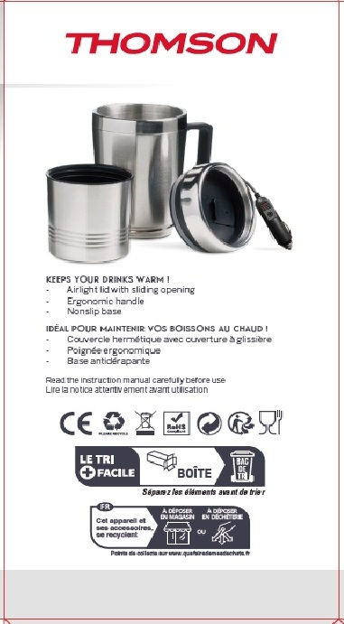 Fonctionne sur l'allume cigare de votre véhicule GARDEZ VOS BOISSONS AU CHAUD !!