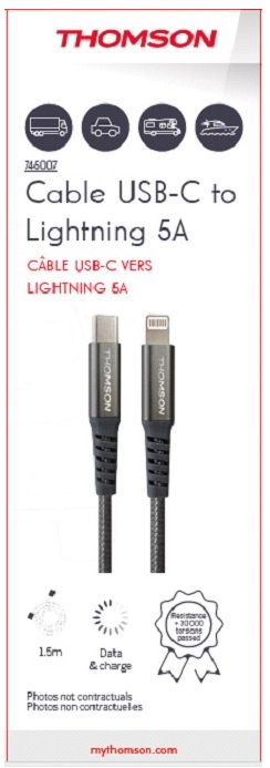 CÂBLE THOMSON USB-C VERS LIGHTNING 5A